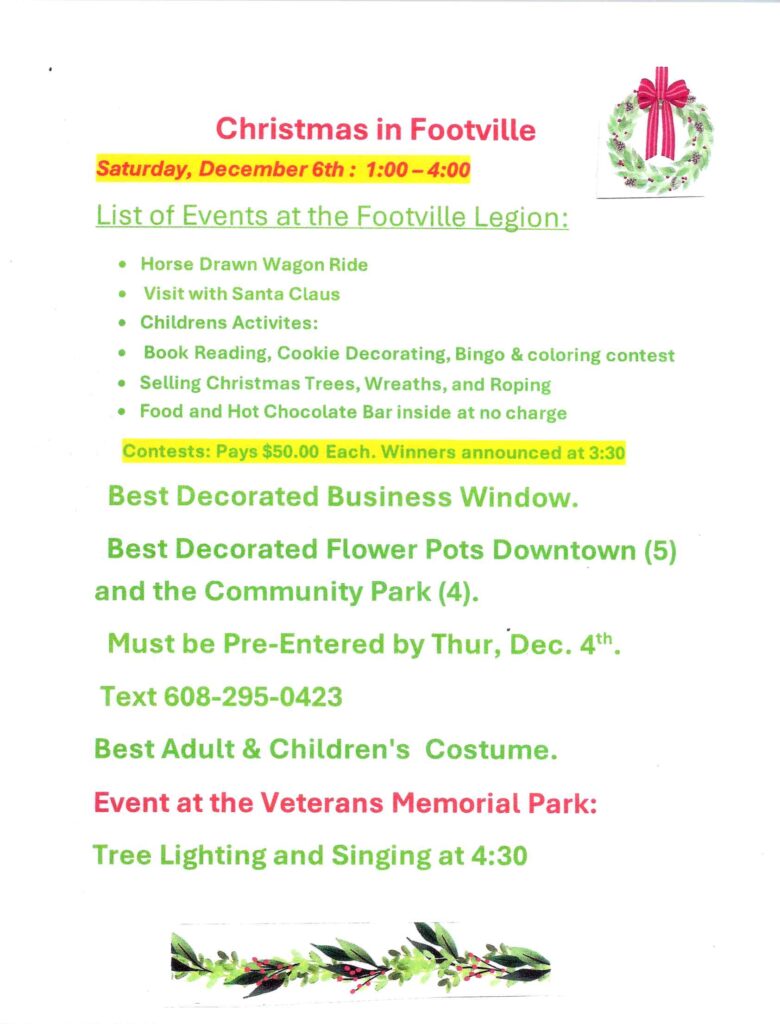 Posted on November 20, 2025, Edited November 20, 2025 by Clerk CHRISTMAS IN FOOTVILLE December 6, 2025 1pm to 4pm